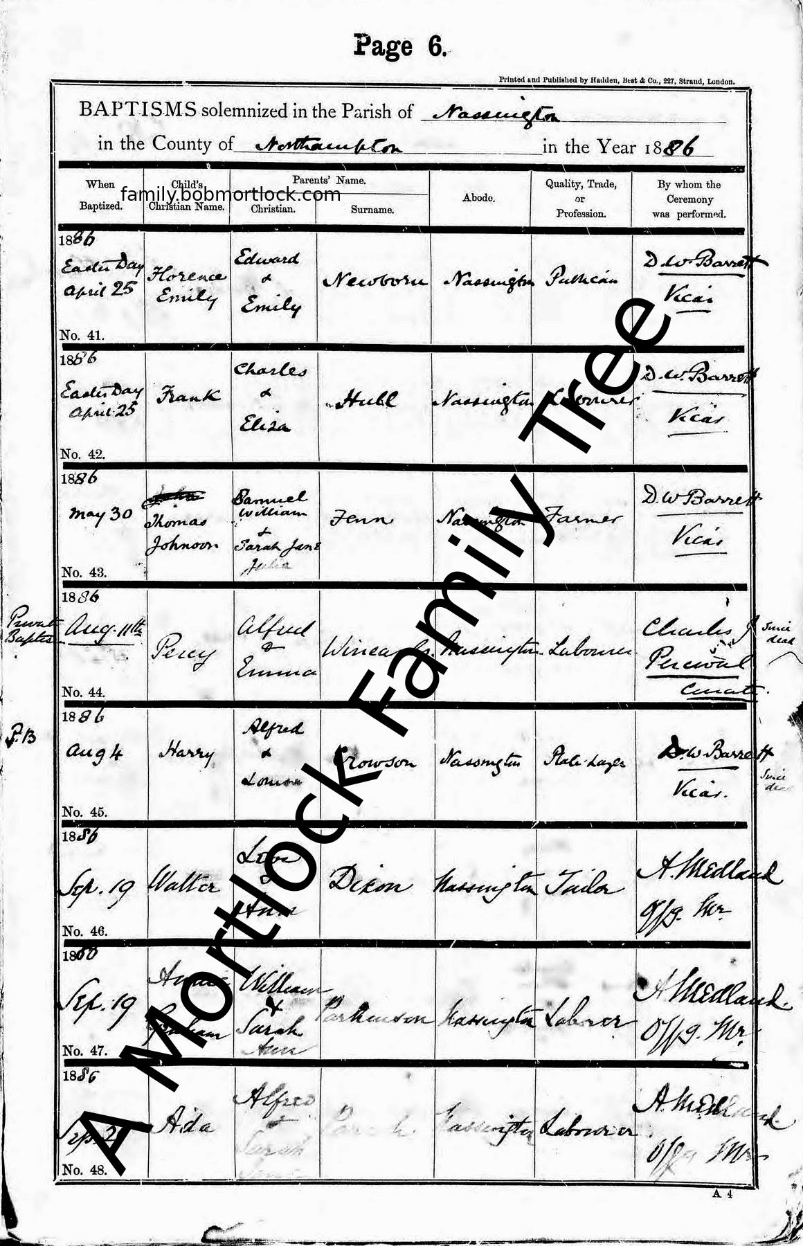 | Baptism | 30 May 1886 (Age 17 months) Nassington, Northamptonshire, England Address: The Parish Church |
