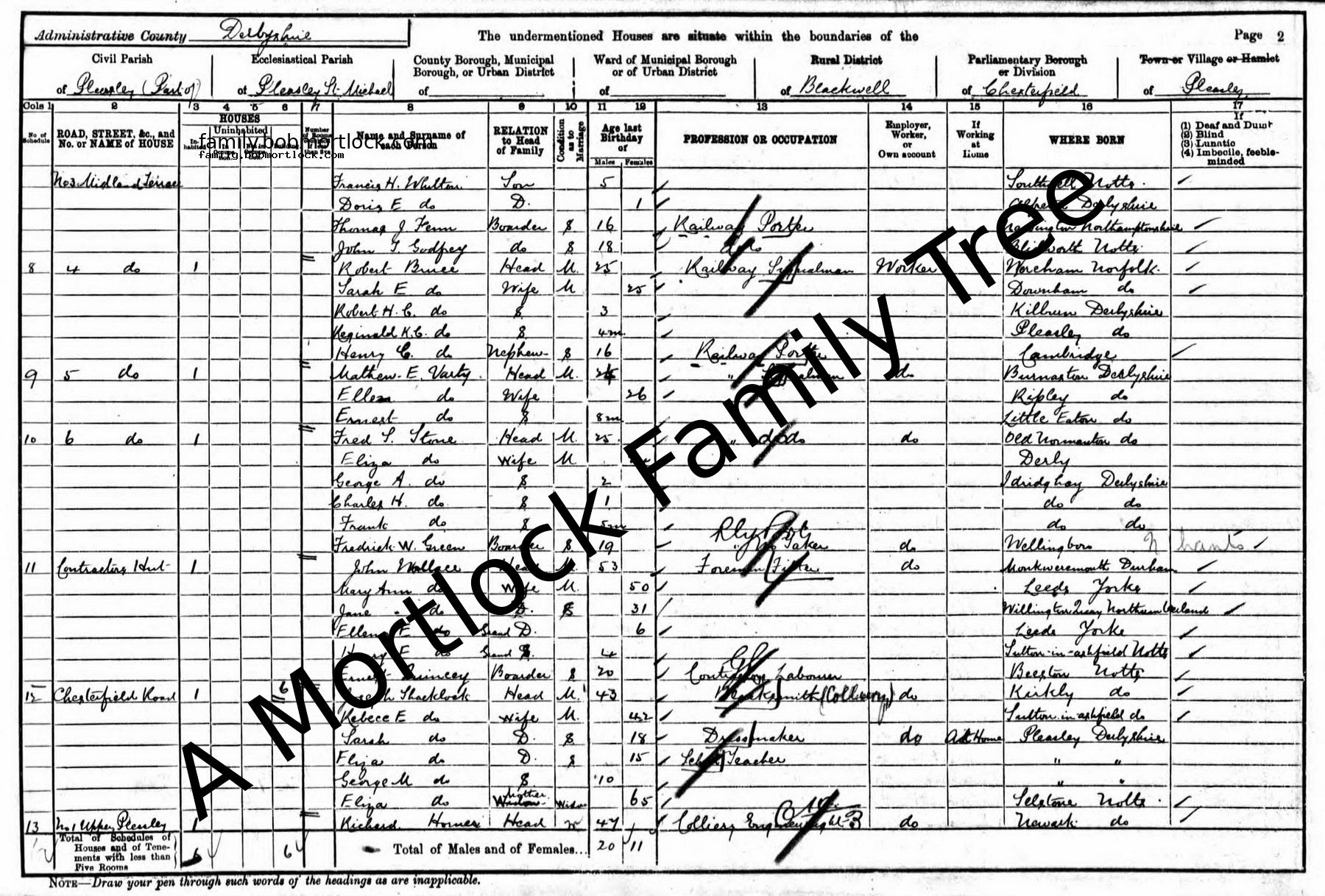 | Census | 31 March 1901 (Age 16) Pleasley, Derbyshire, England Address: 3 Midland Terrace