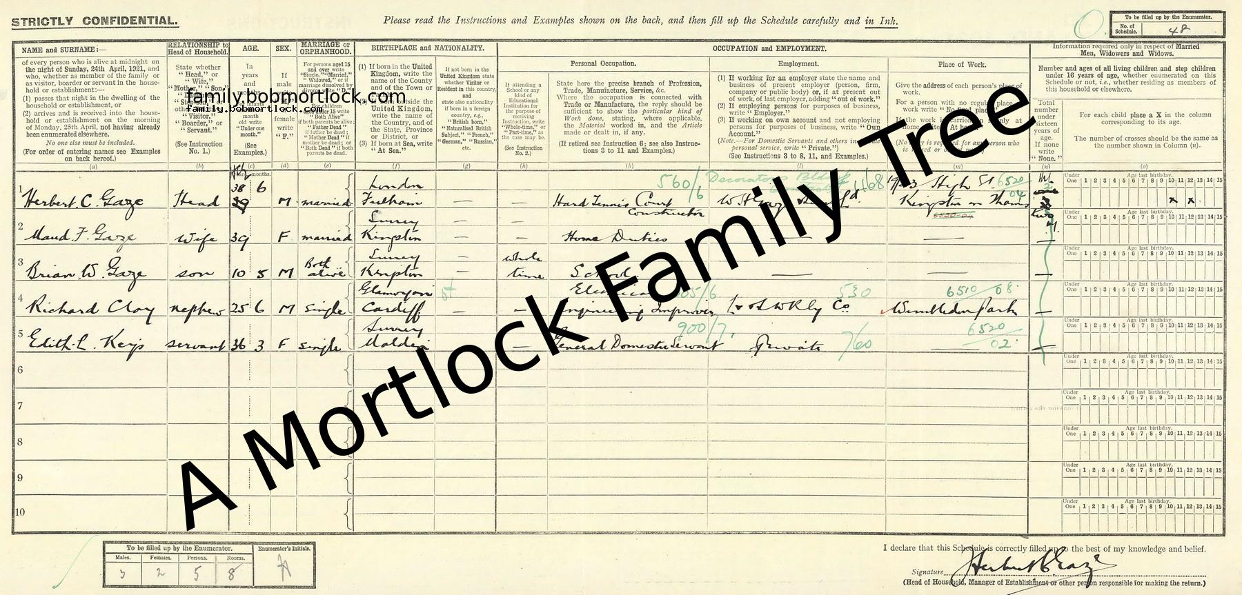 | Census | 19 June 1921 (Age 25) Kingston On Thames, Surrey, England