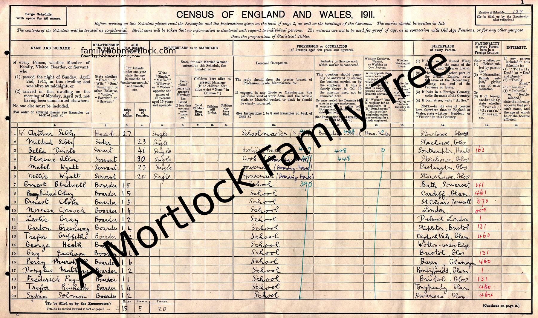 | Census | 2 April 1911 (Age 15) Stonehouse, Gloucestershire, England Address: Wycliffe Boarding School