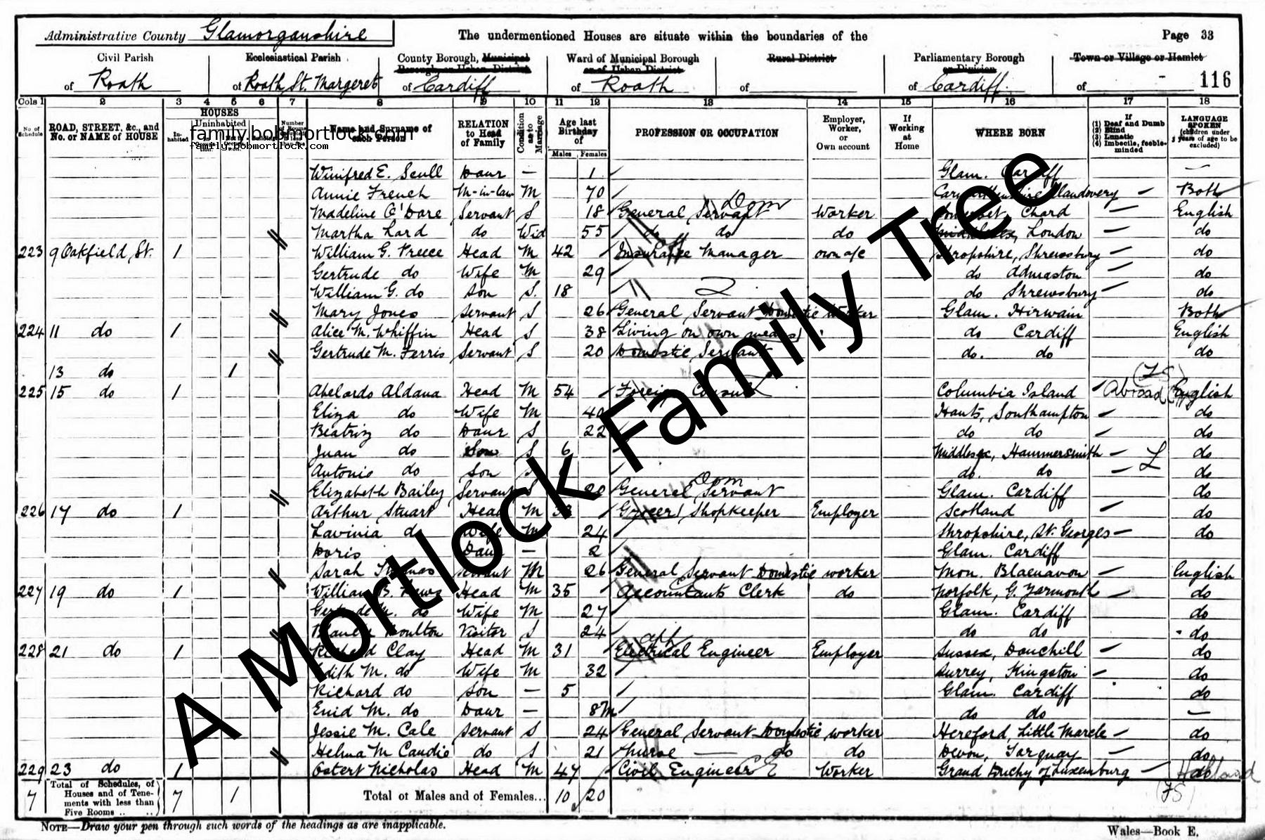 | Census | 31 March 1901 (Age 5) Roath, Cardiff, Wales Address: 21 Oakfield Street