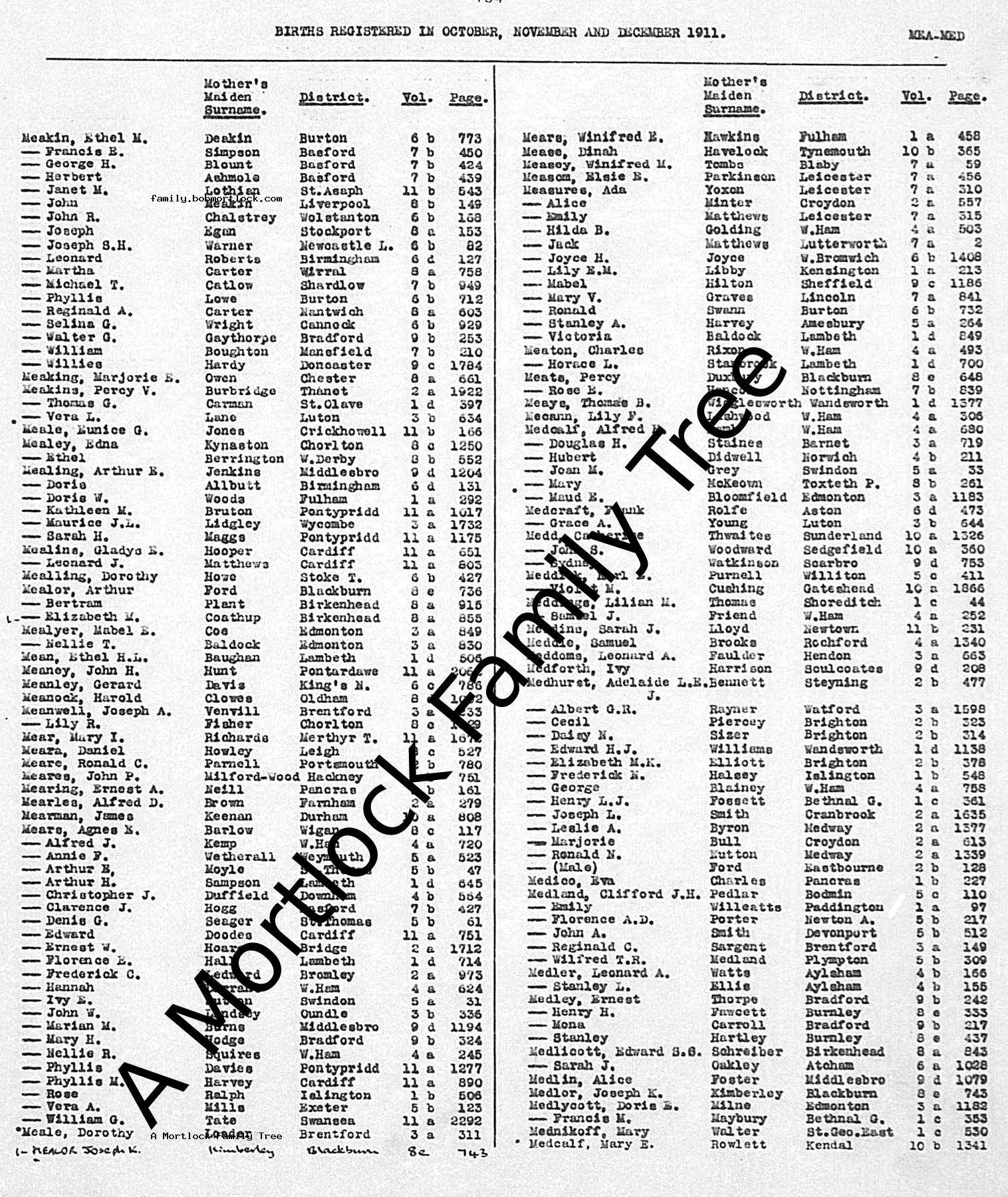 | Birth | November 1911 Bethnal Green, E London, England Address: 224 Valance Road |