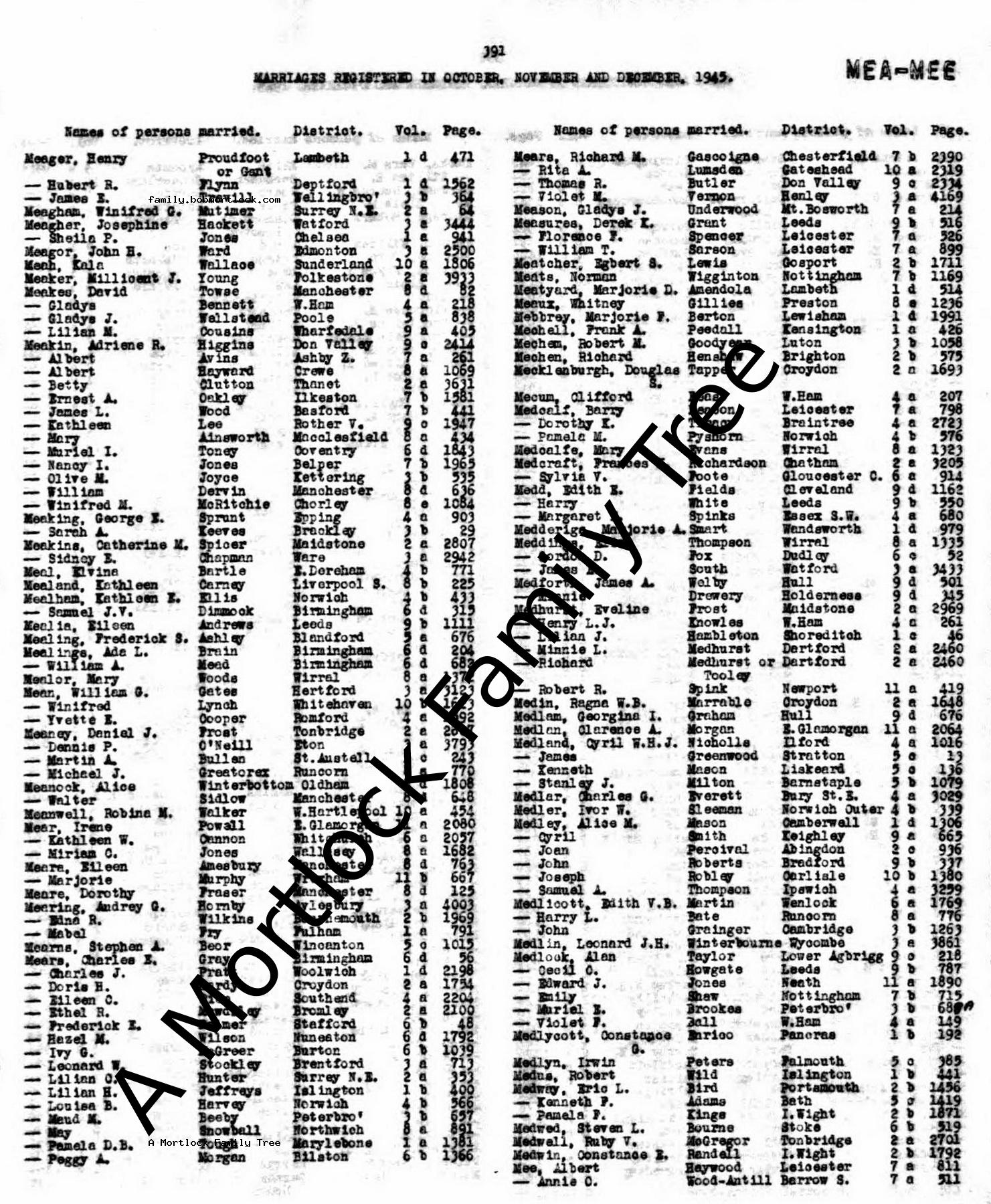 | Religious Marriage | Doris Annie KNOWLES - View family 1945 (Age 33) West Ham, E London, England |