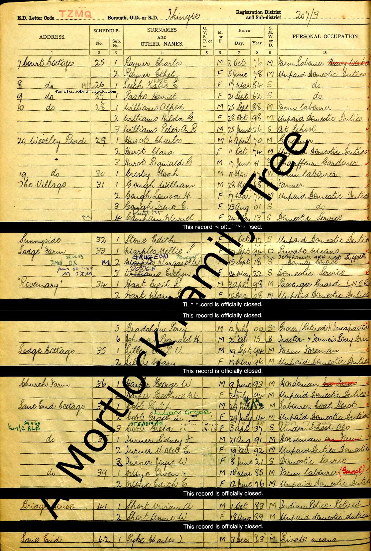| Census | 29 September 1939 (Age 47) Thingoe, Suffolk, England Address: 38 Lane End Cottage
