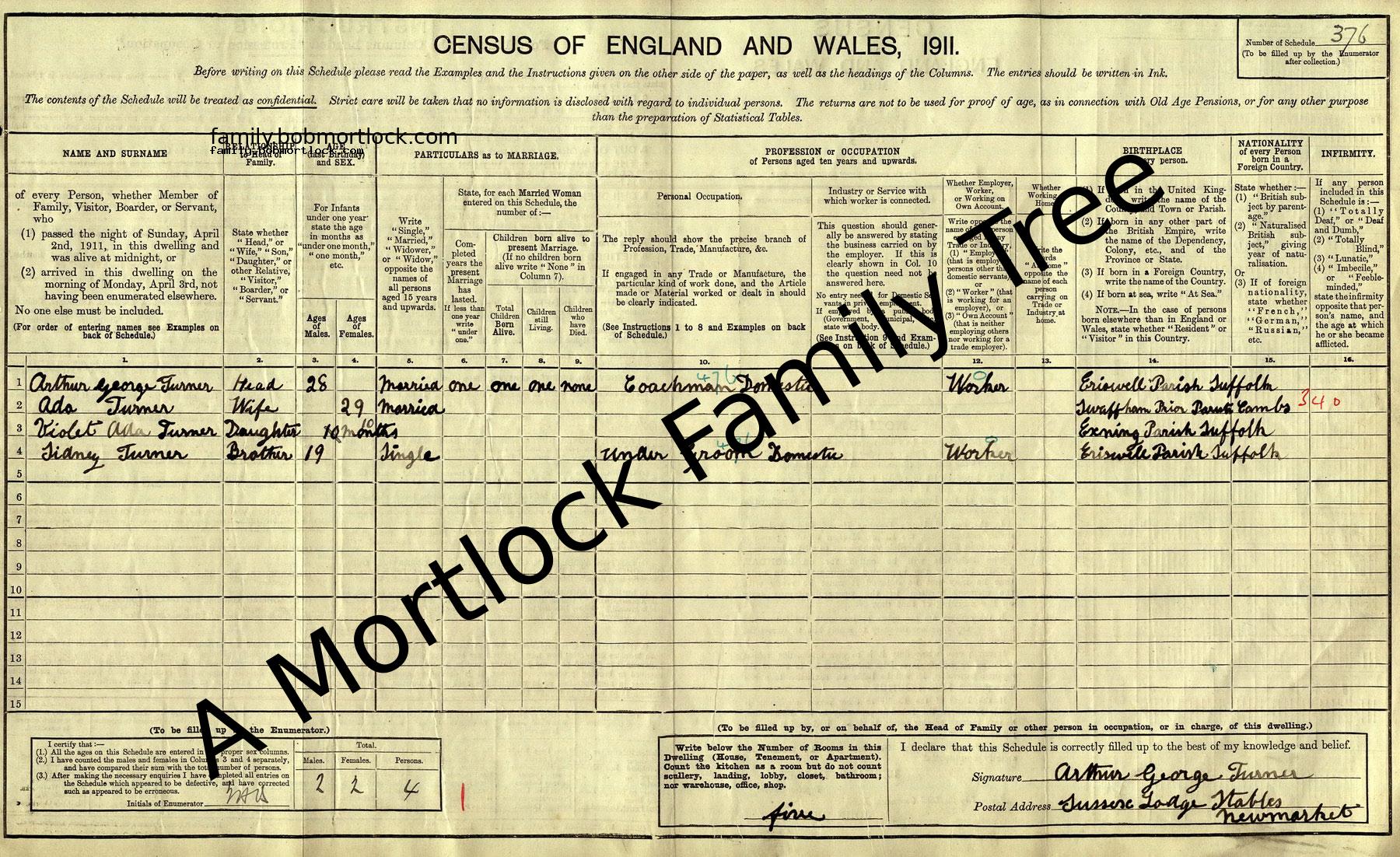 | Census | 2 April 1911 (Age 19) Fornham All Saints, Suffolk, England |