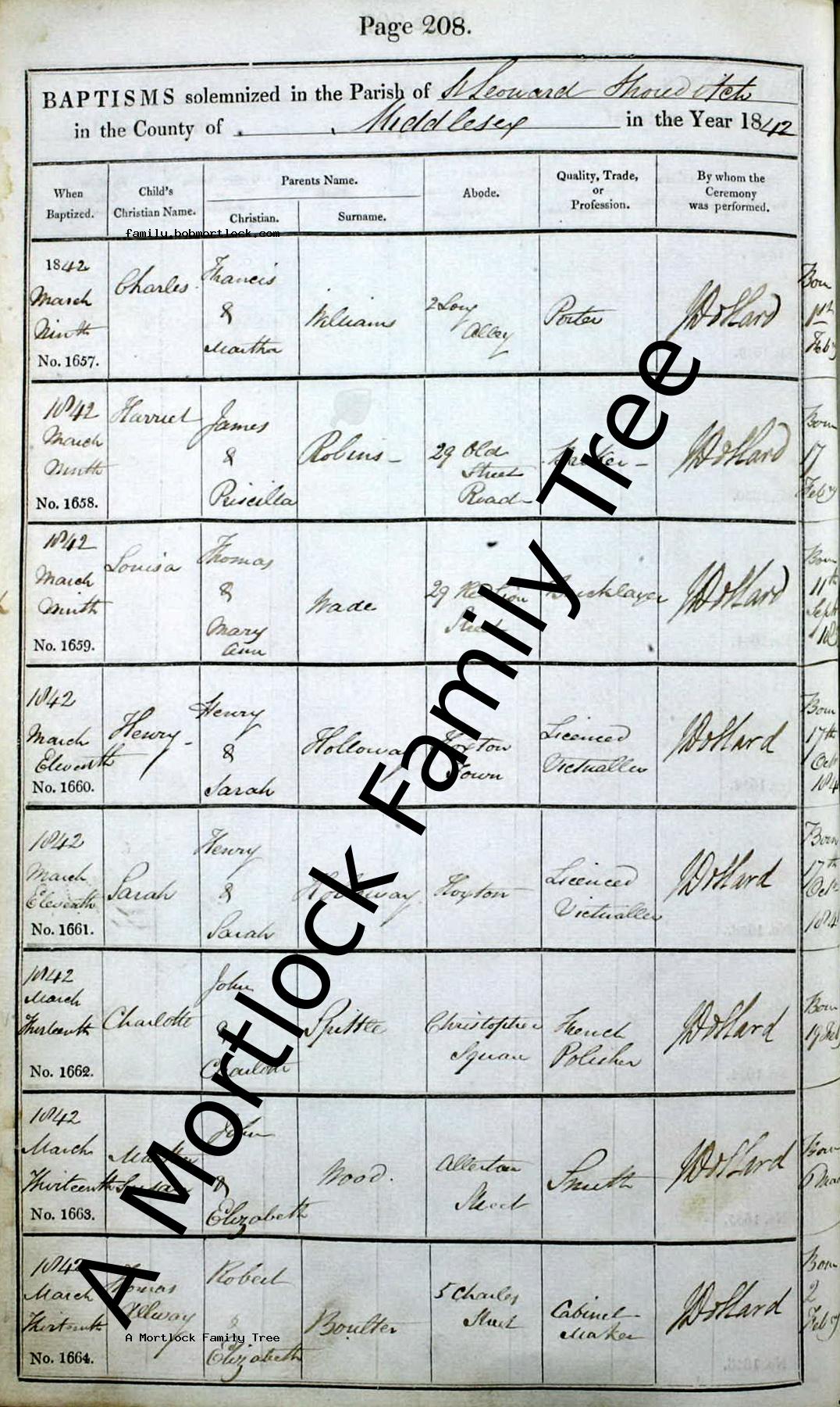 | Baptism | 19 March 1842 (Age 30 days) Shoreditch, E London, England Address: St Leonard's |