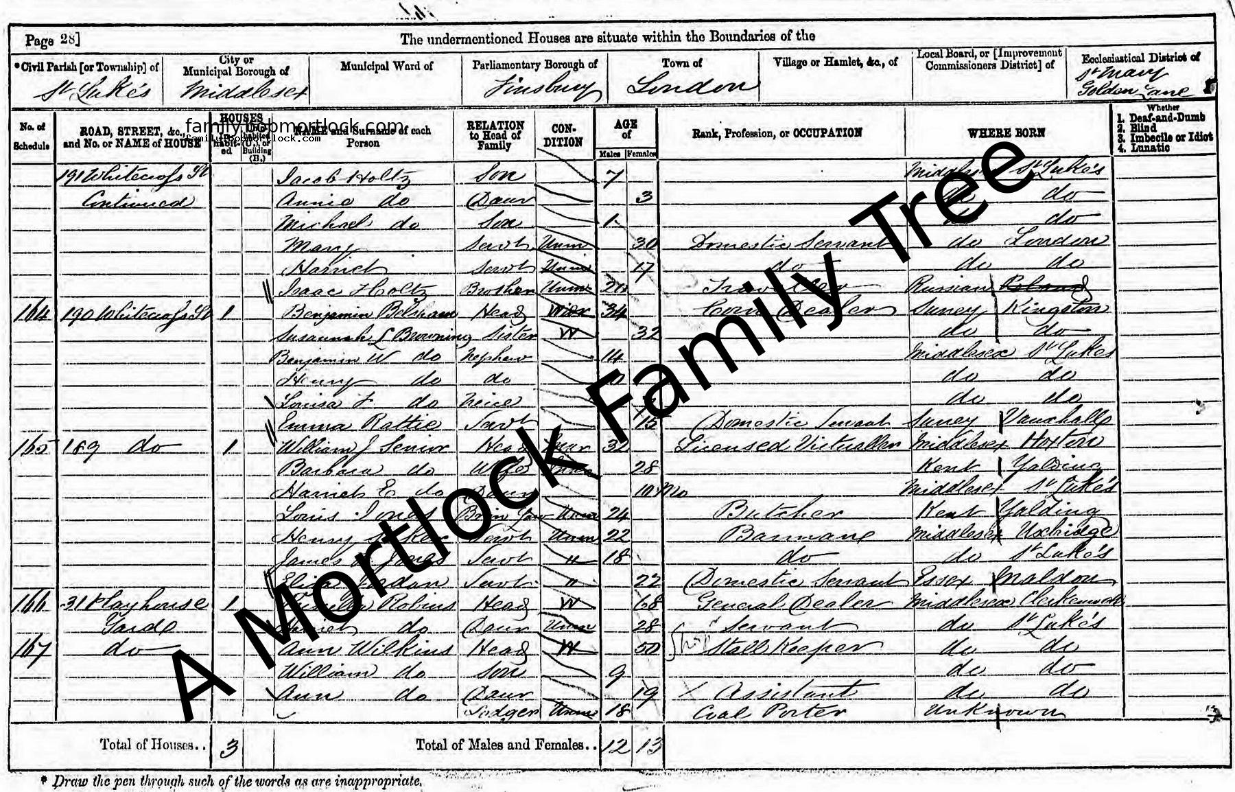 | Census | 2 April 1871 (Age 29) Holborn, C London, England Address: 31 Playhouse Yard