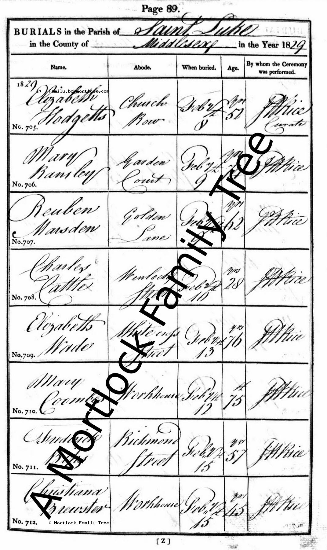 | Burial | 7 February 1829 (Age 62) St Lukes, C London, England |