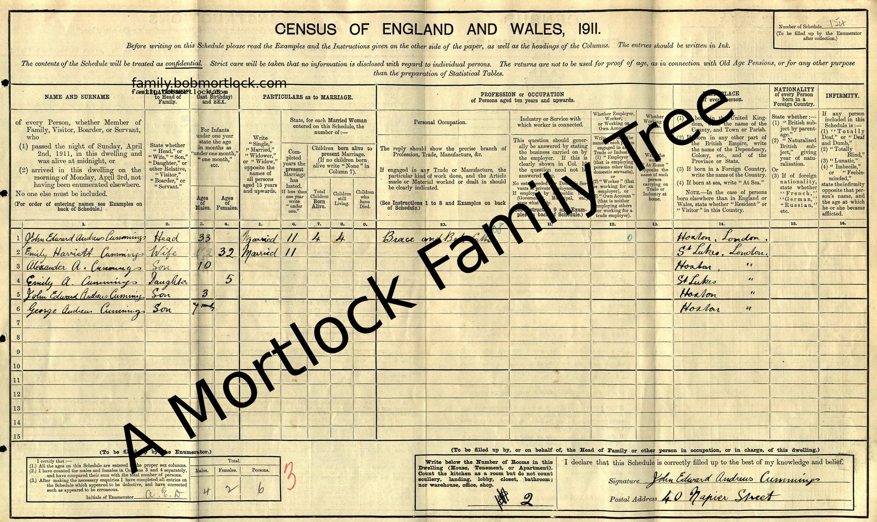 | Census | 2 April 1911 (Age 32) Shoreditch, E London, England Address: 40 Napier Street