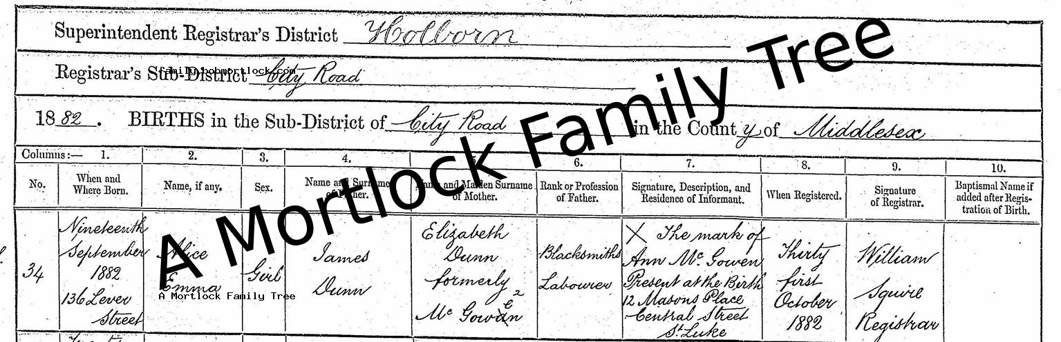 | Birth | 19 September 1882 Holborn, C London, England Address: 136 Lever Street, City Road |