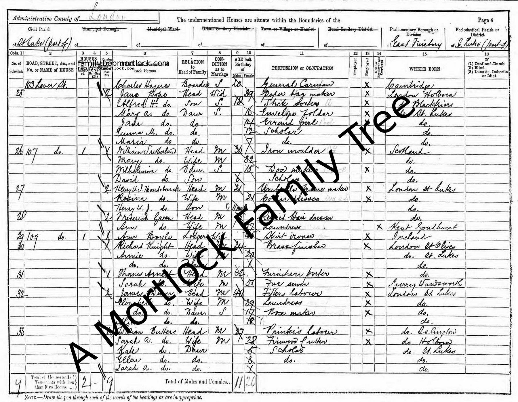 | Census | 5 April 1891 (Age 8) St Lukes, C London, England Address: 109 Lever Street