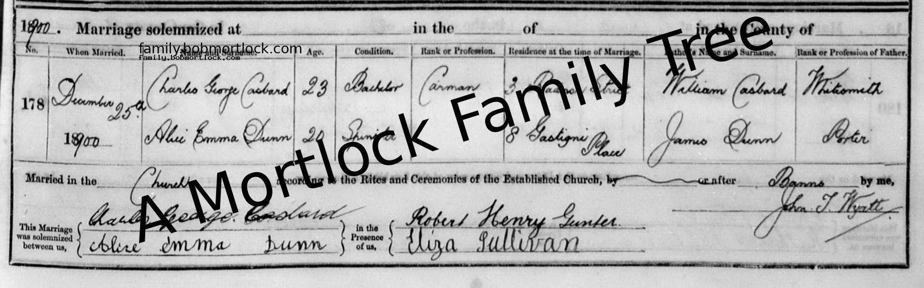 | Religious Marriage | Charles George CASBARD - View family 25 December 1900 (Age 18) St Lukes, C London, England Address: St Clement, City Road |