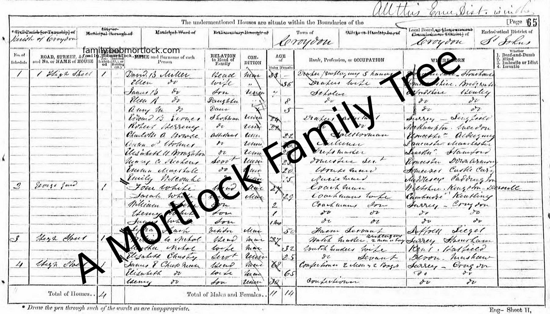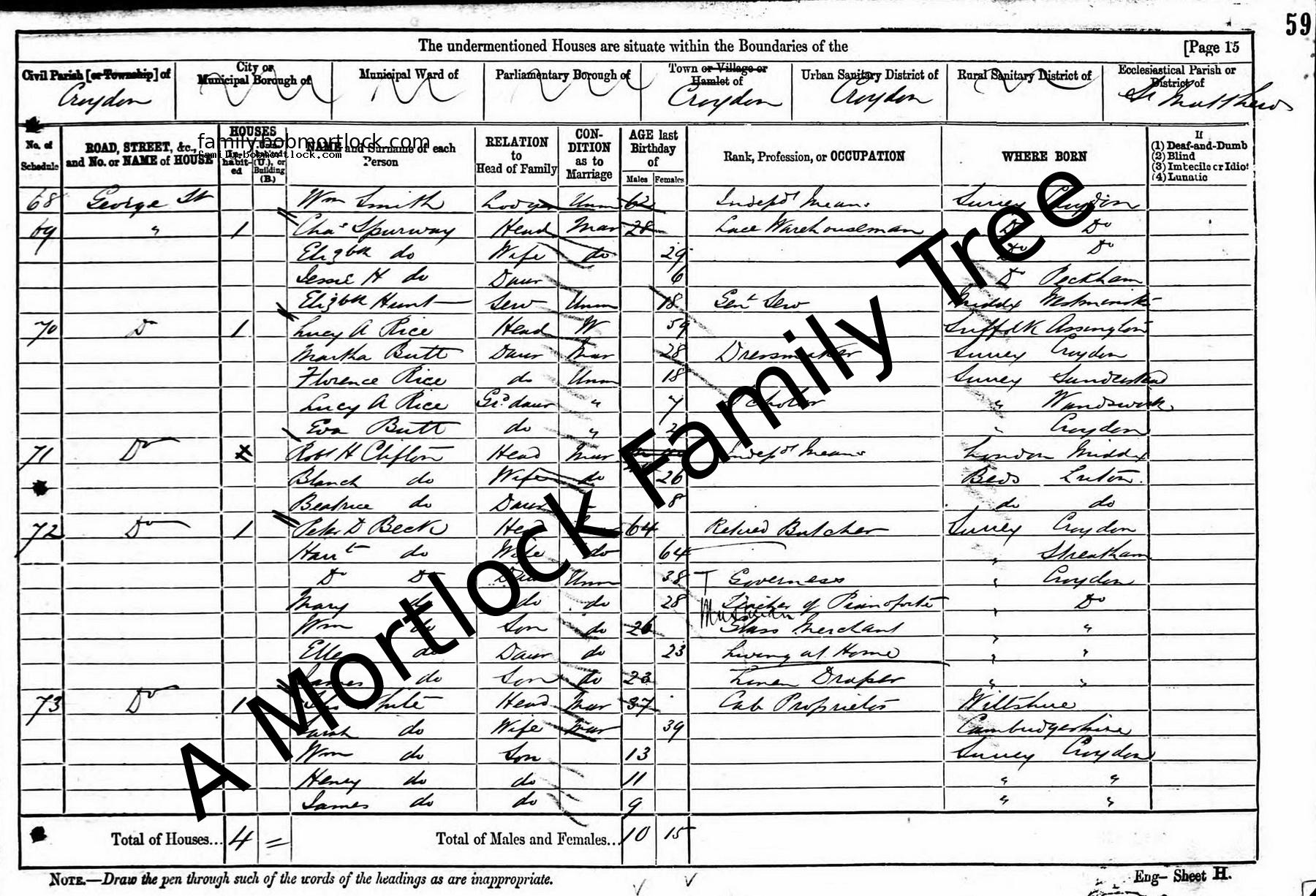 | Census | 3 April 1881 (Age 36) Croydon, Surrey, England Address: George Street
