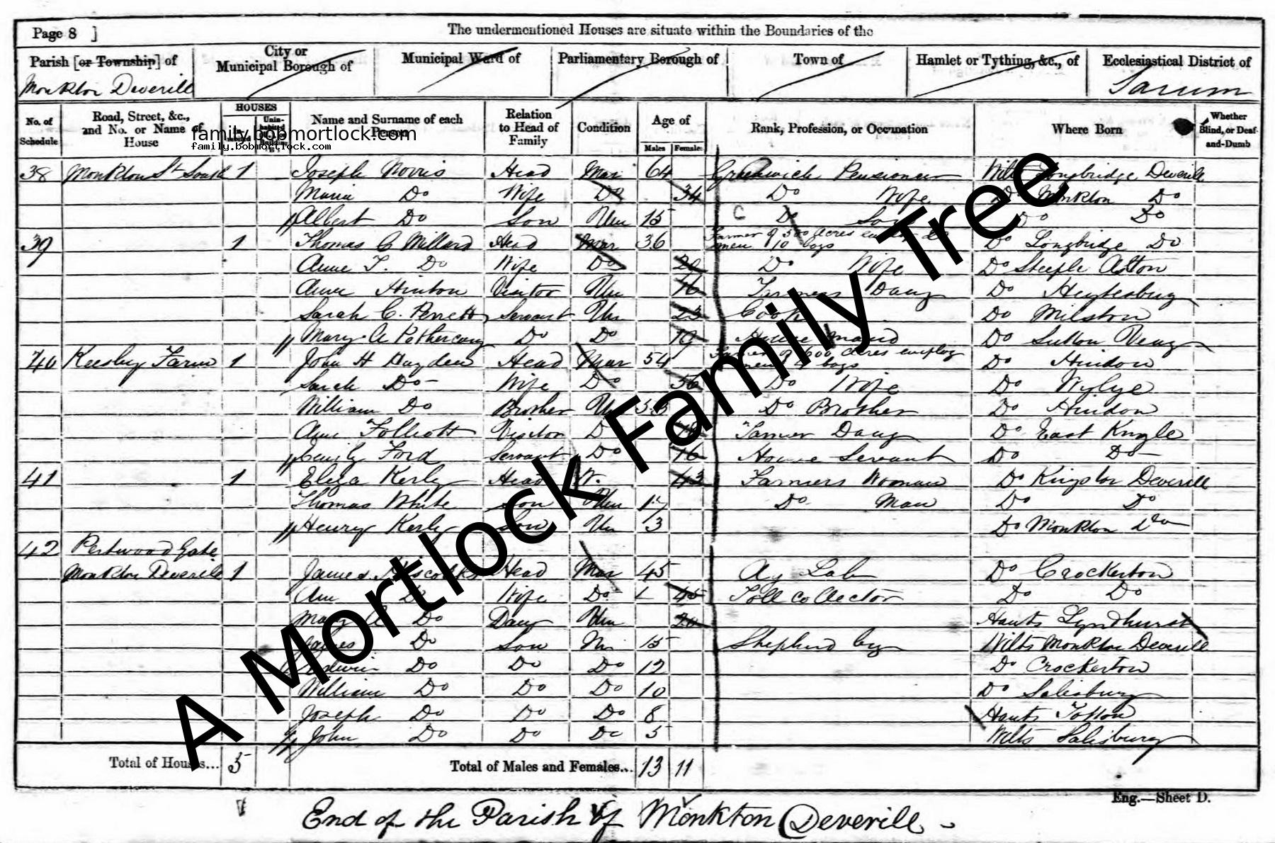 | Census | 30 March 1851 (Age 6) Kingston Deverill, Wiltshire, England |