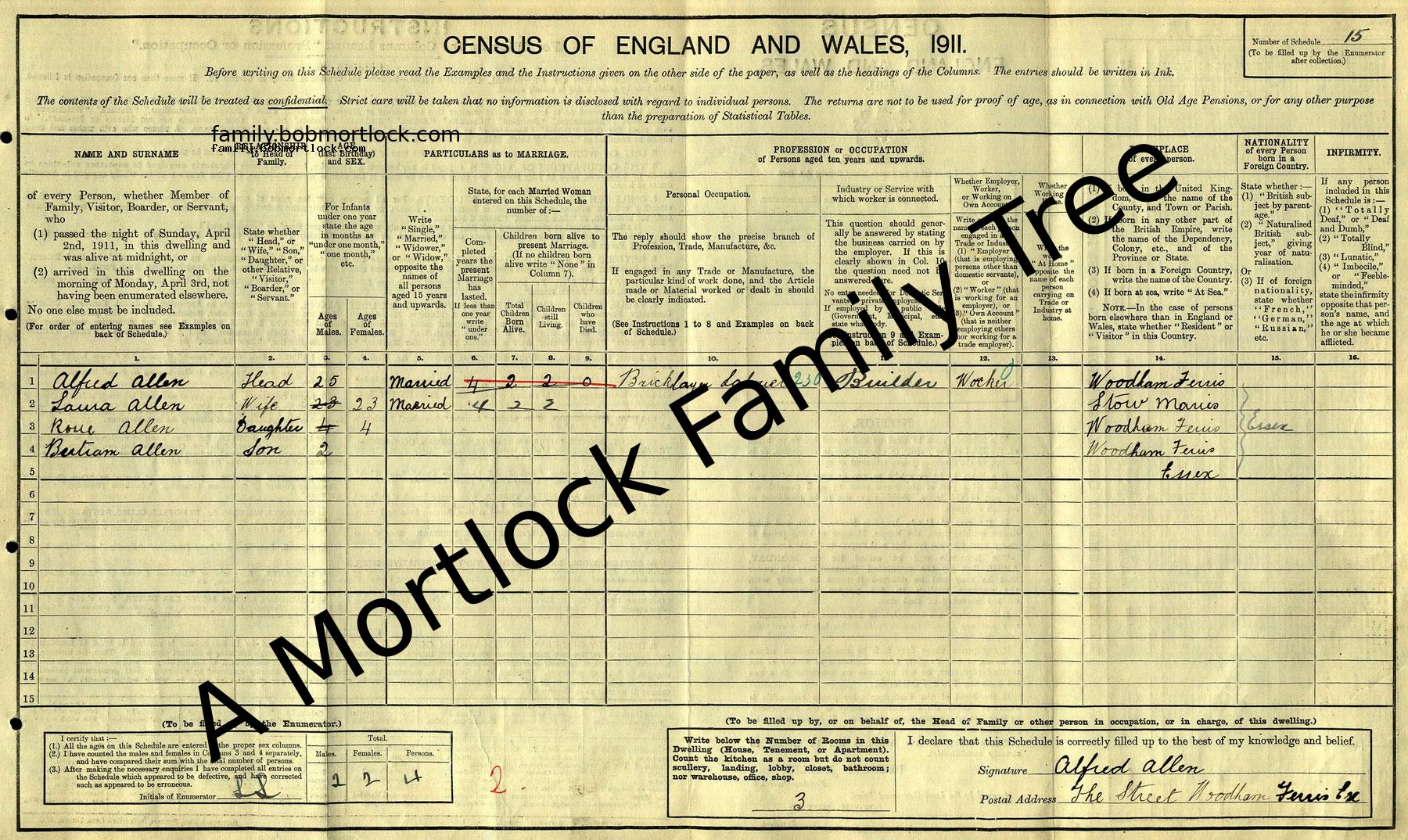 | Census | 2 April 1911 (Age 2) Woodham Ferrers, Essex, England Address: The Street, Woodham Ferris |
