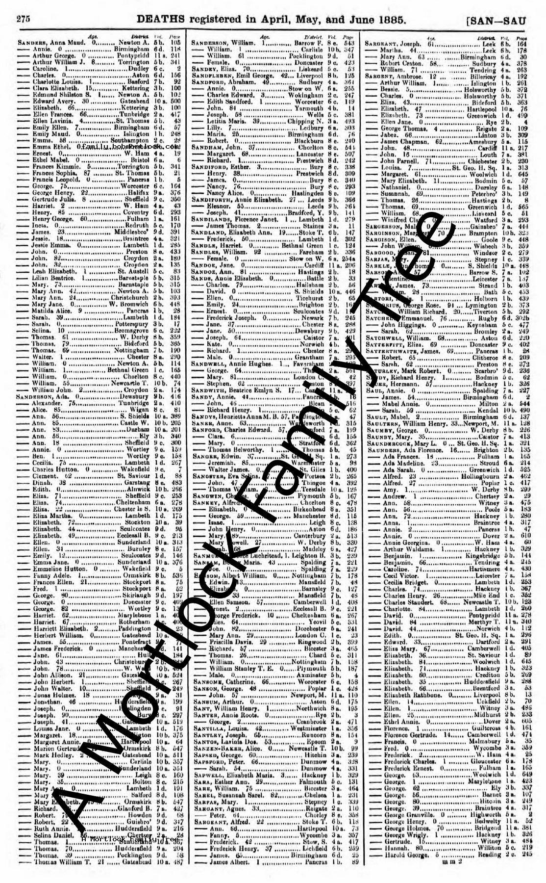 | Death of a Mother | 1870 (Age 2) Homerton, E London, England