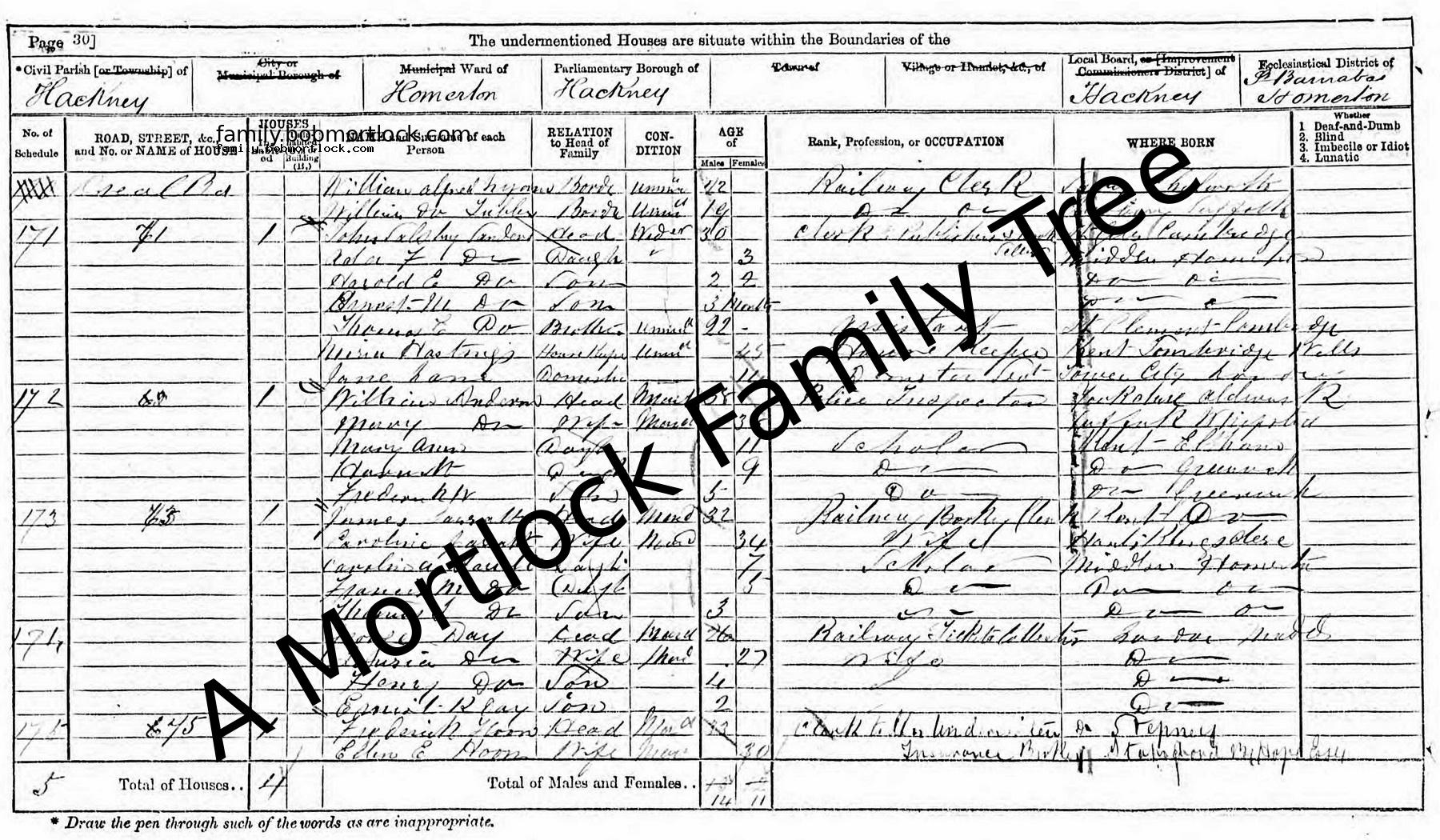 | Census | 2 April 1871 (Age 3) Hackney, E London, England Address: 71 Orial Road, Homerton |
