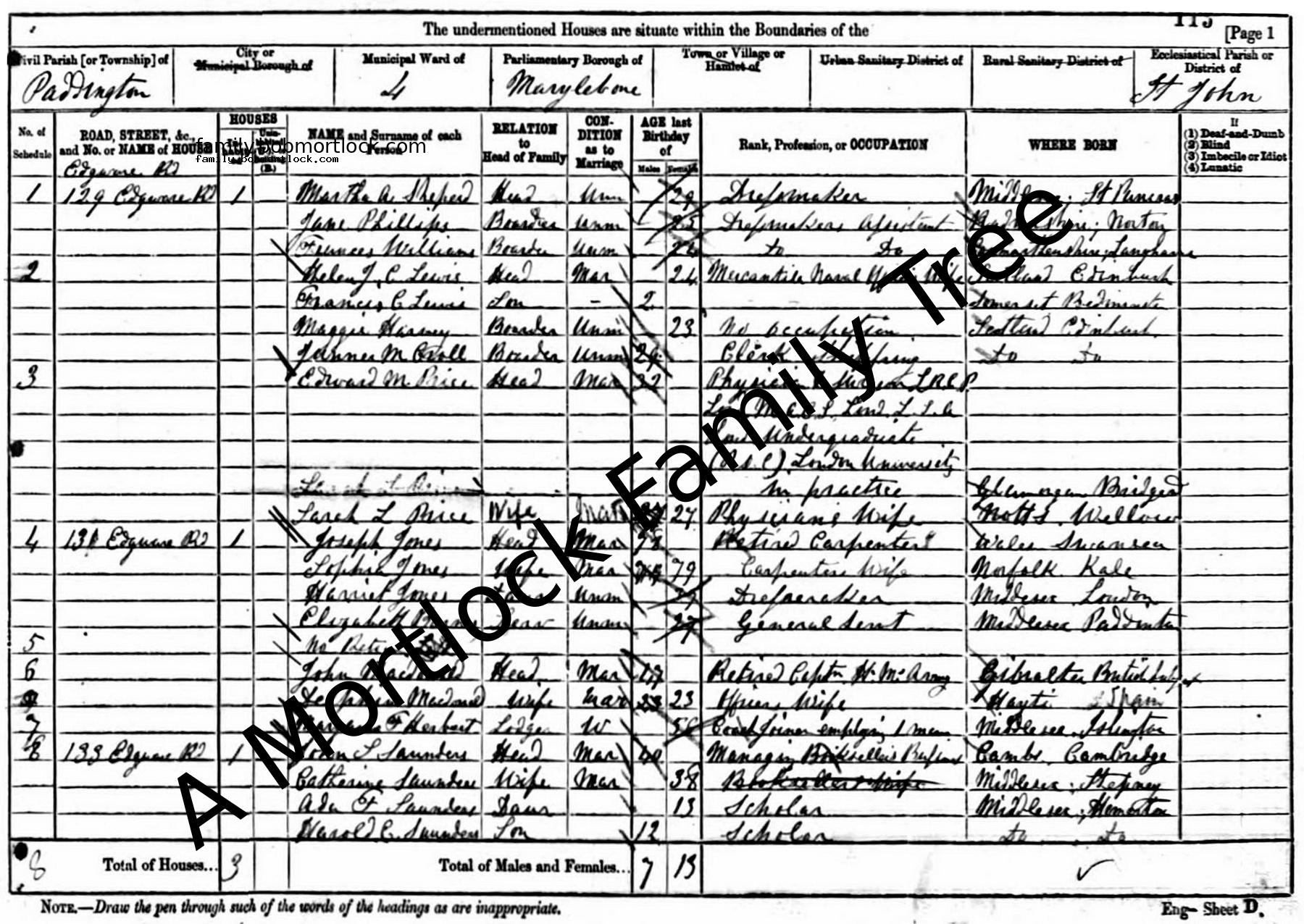 | Census | 3 April 1881 (Age 13) Kensington, London, England Address: 133 Edgeware Rd, Paddington |