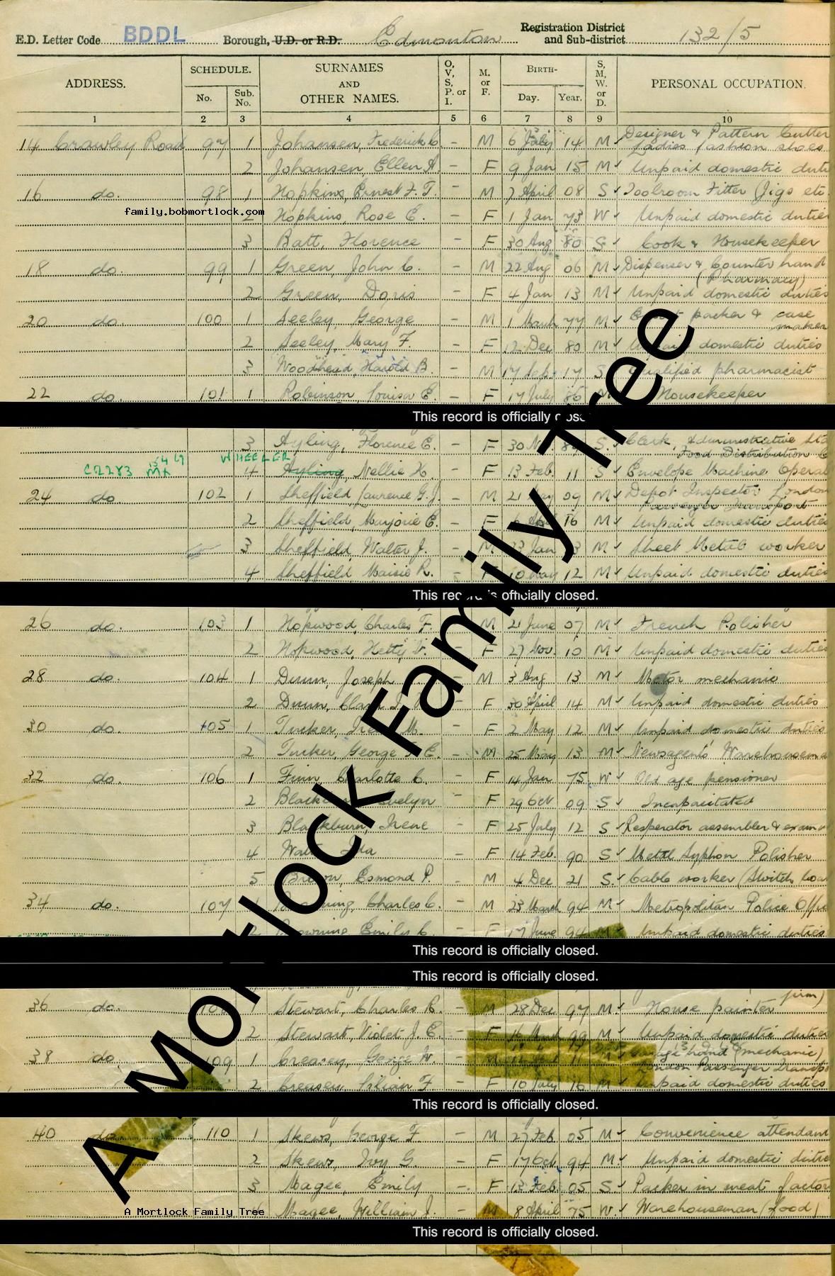 | Census | 29 September 1939 (Age 24) Edmonton, Middlesex, England Address: 14 Crawley Road