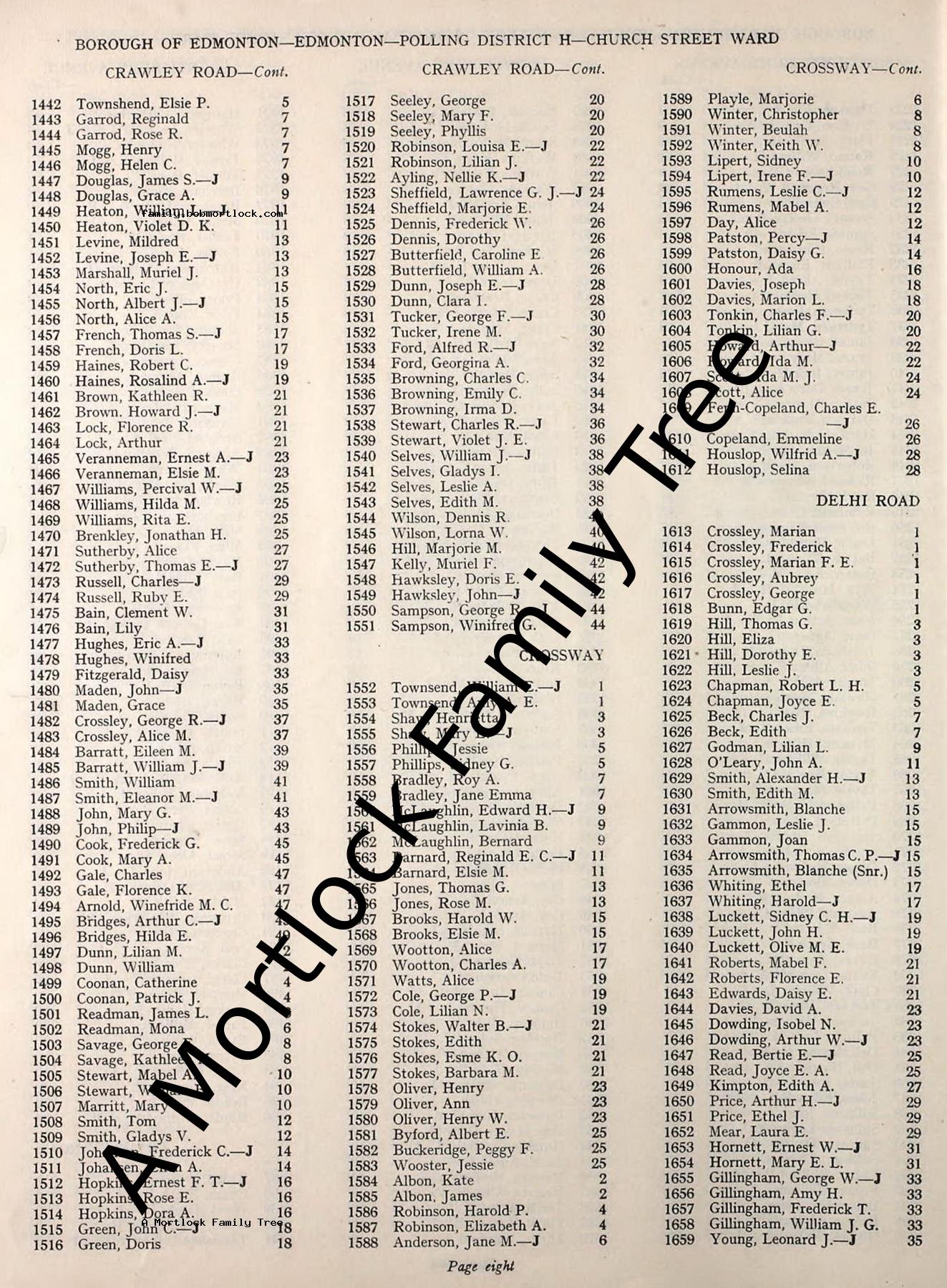 | Residence | 1950 (Age 34) Edmonton, Middlesex, England Address: 14 Crawley Road |