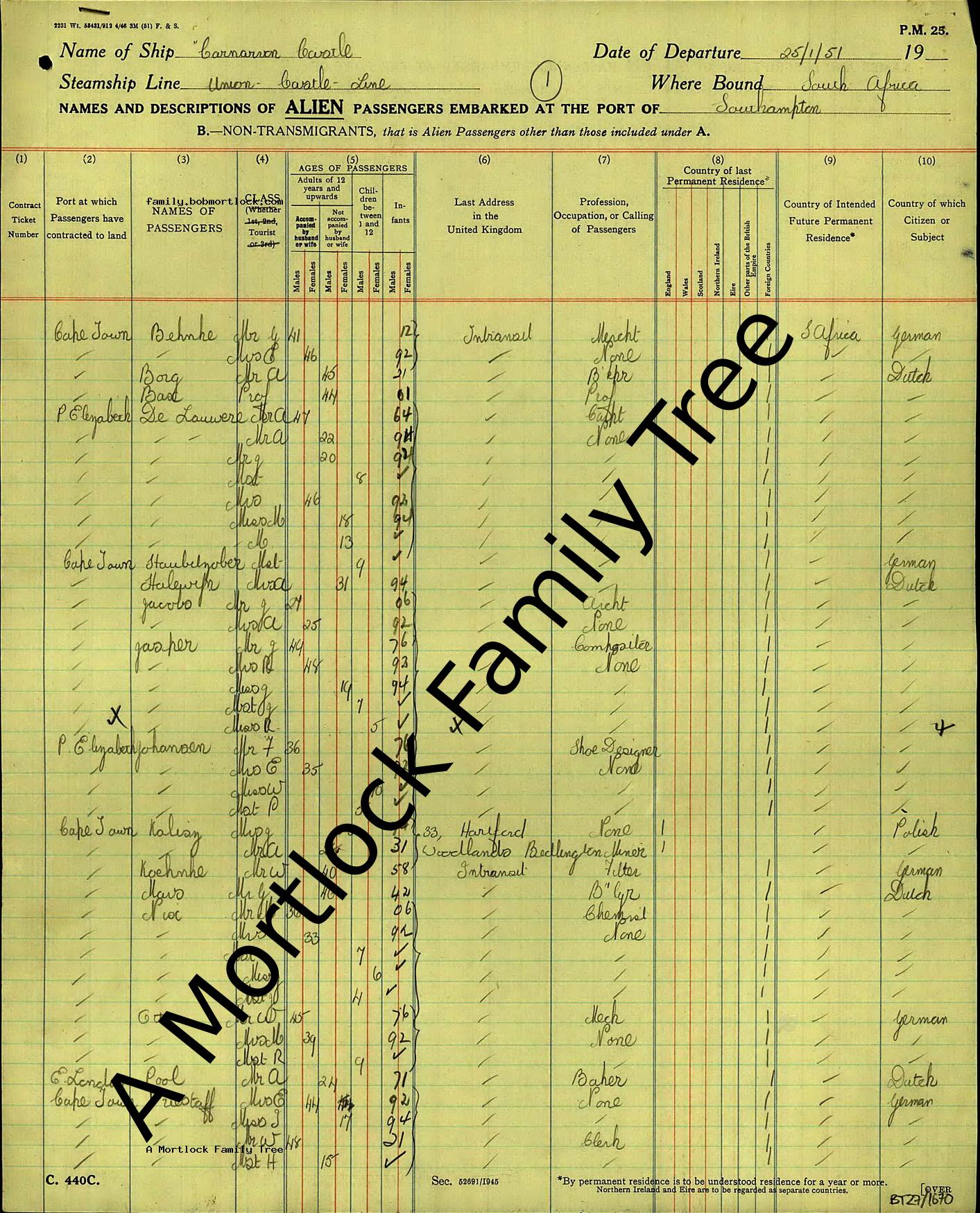 | Travel | Outgoing Passenger List 25 January 1951 (Age 36) Southampton, Hampshire, England |