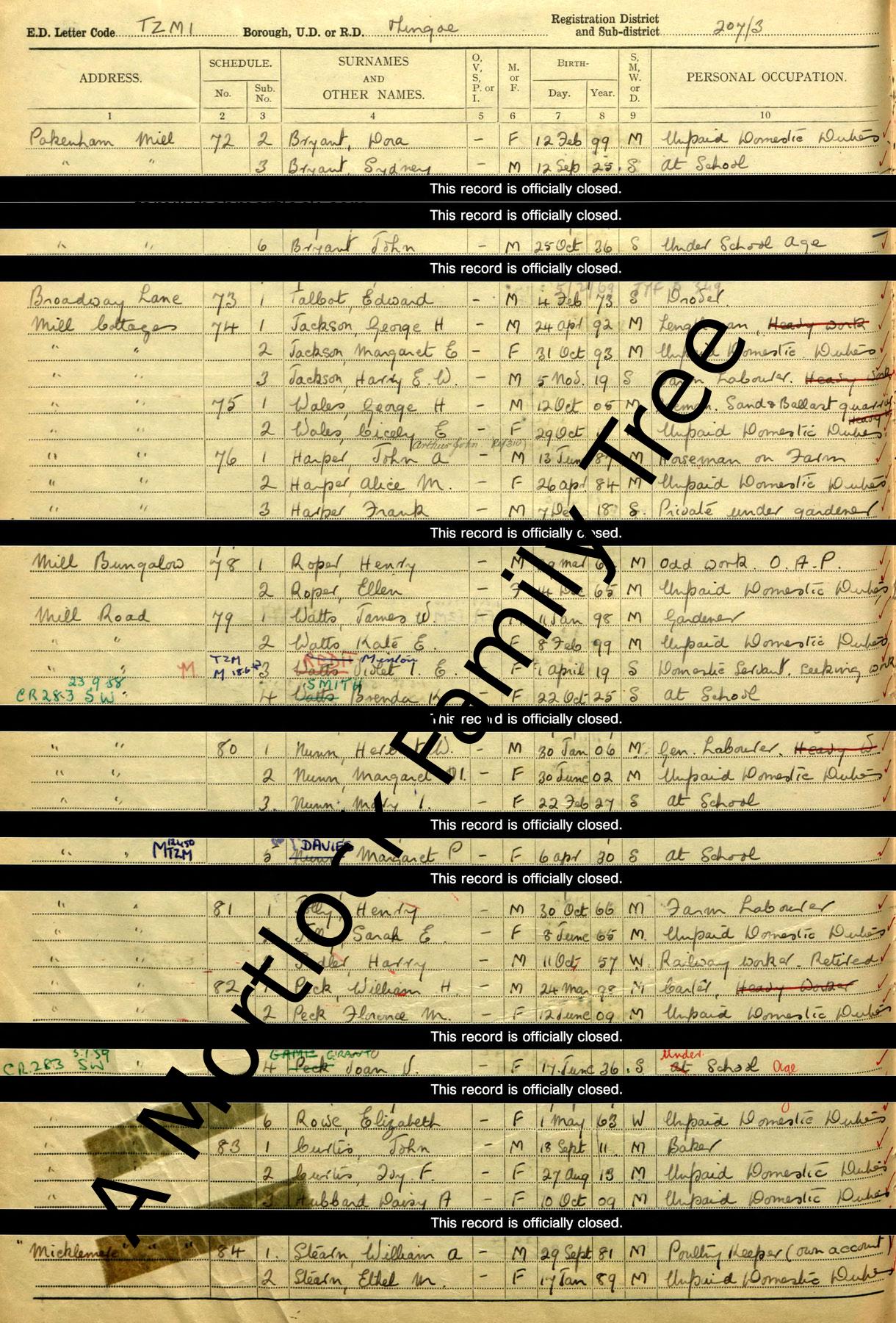 | Census | 29 September 1939 (Age 13) Bury St Edmunds, Suffolk, England Address: Mill Road