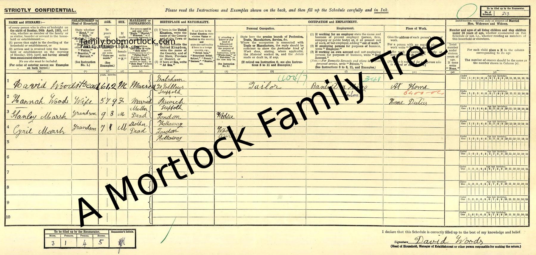 | Census | 19 June 1921 (Age 7) Ipswich, Suffolk, England Address: 5 Elliott Street