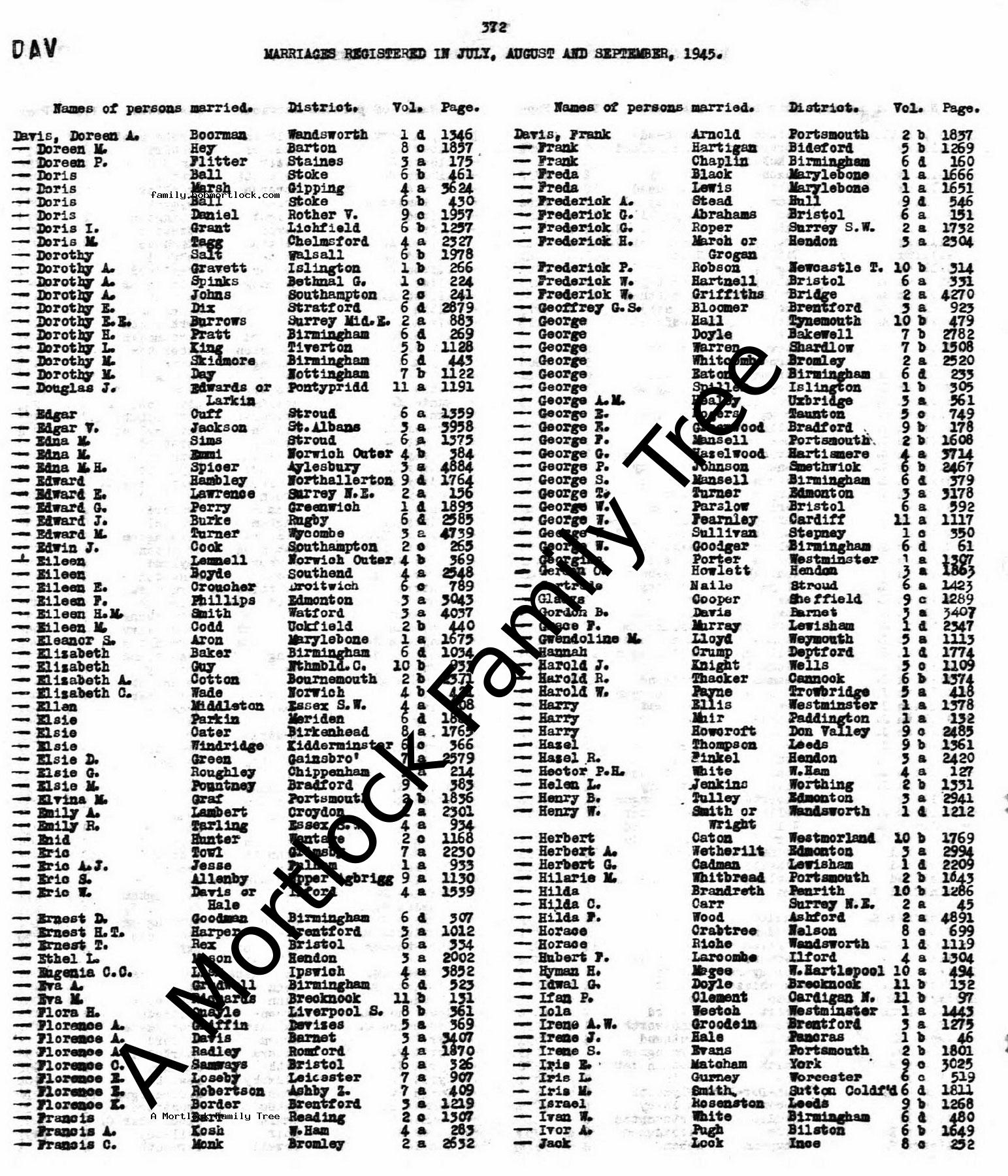 | Religious Marriage | Dora DAVIS - View family 1945 (Age 30) Stowmarket, Suffolk, England |