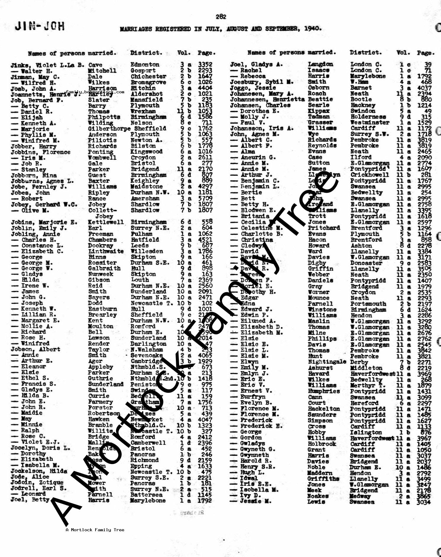| Religious Marriage | Charles JOHANSEN - View family 1940 (Age 20) Hackney, E London, England |