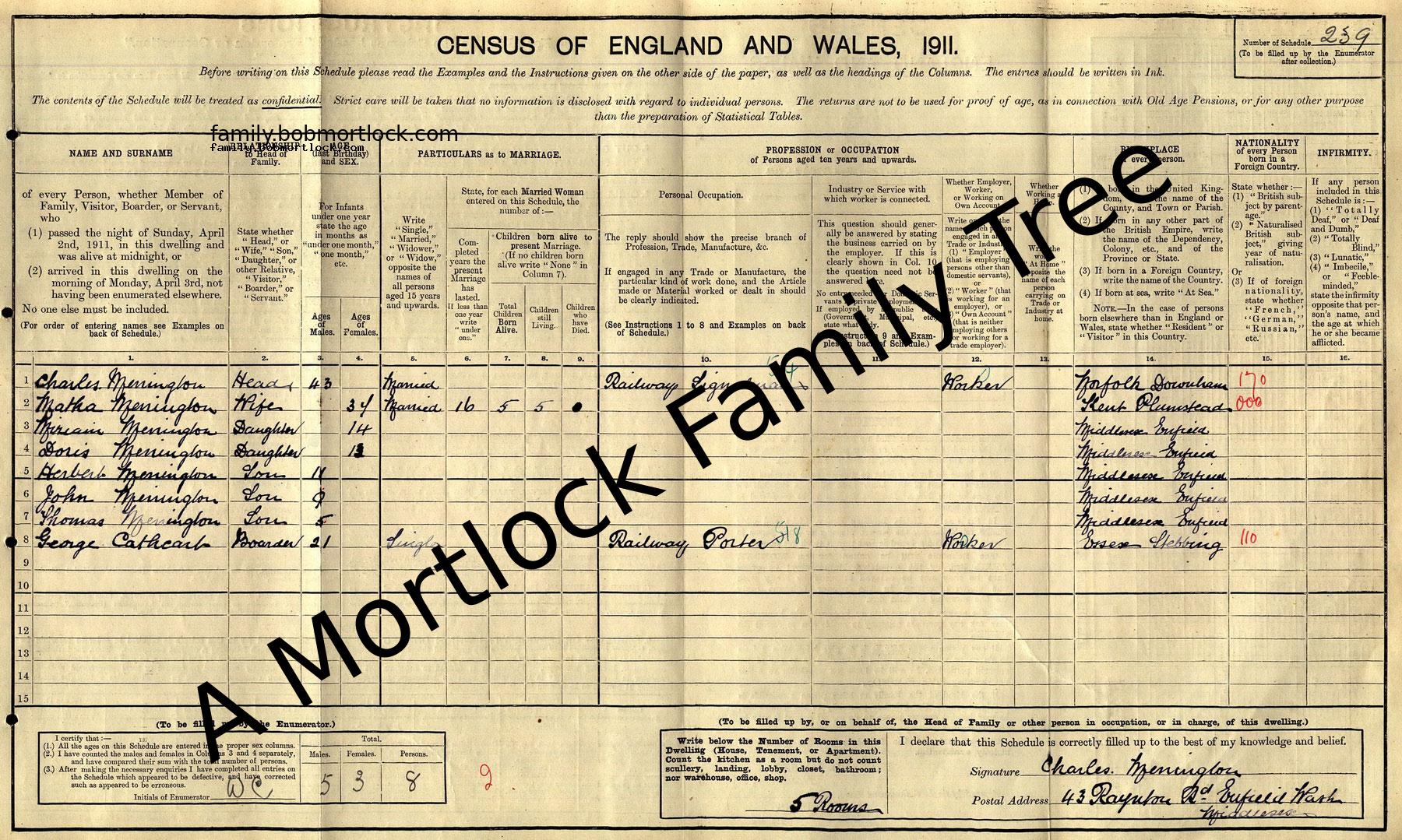 | Census | 2 April 1911 (Age 14) Enfield, Middlesex, England Address: 43 Rayton Road, Enfield Lock