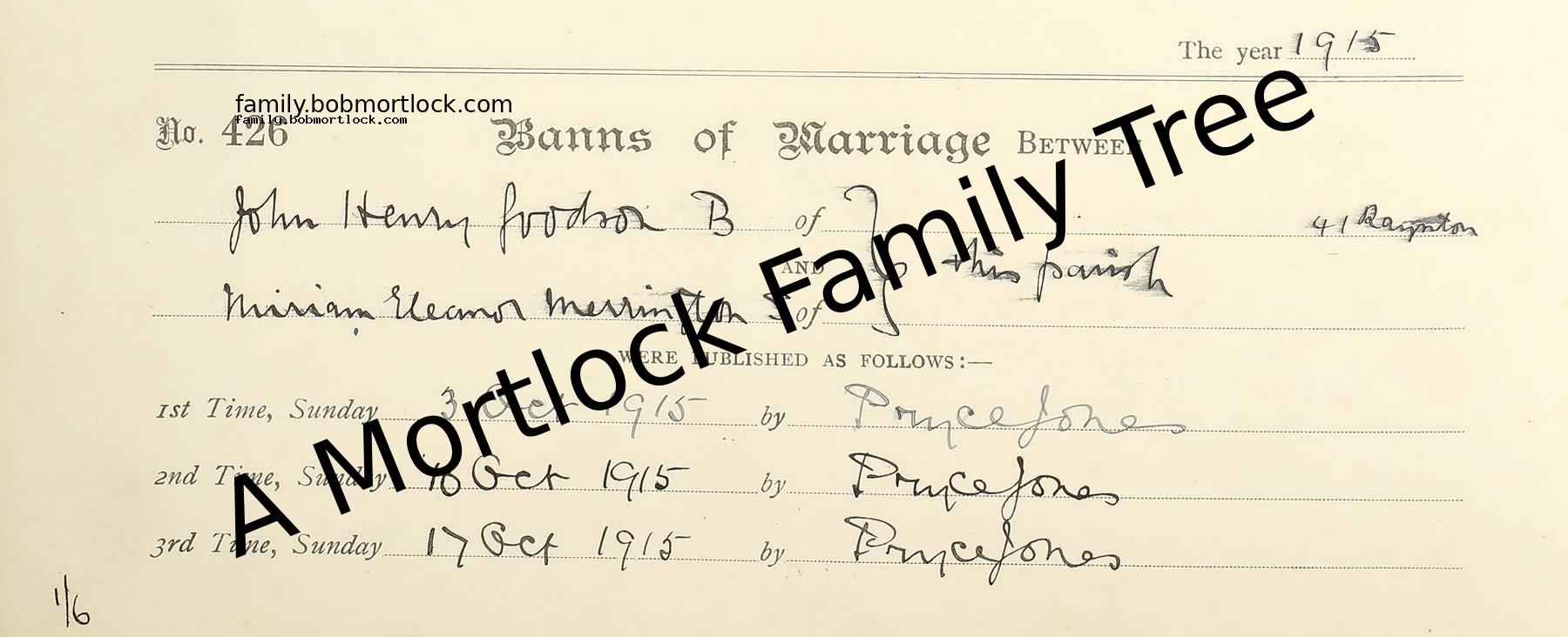 Religious Marriage: 7 November 1915 — Waltham Cross, Middlesex, England |