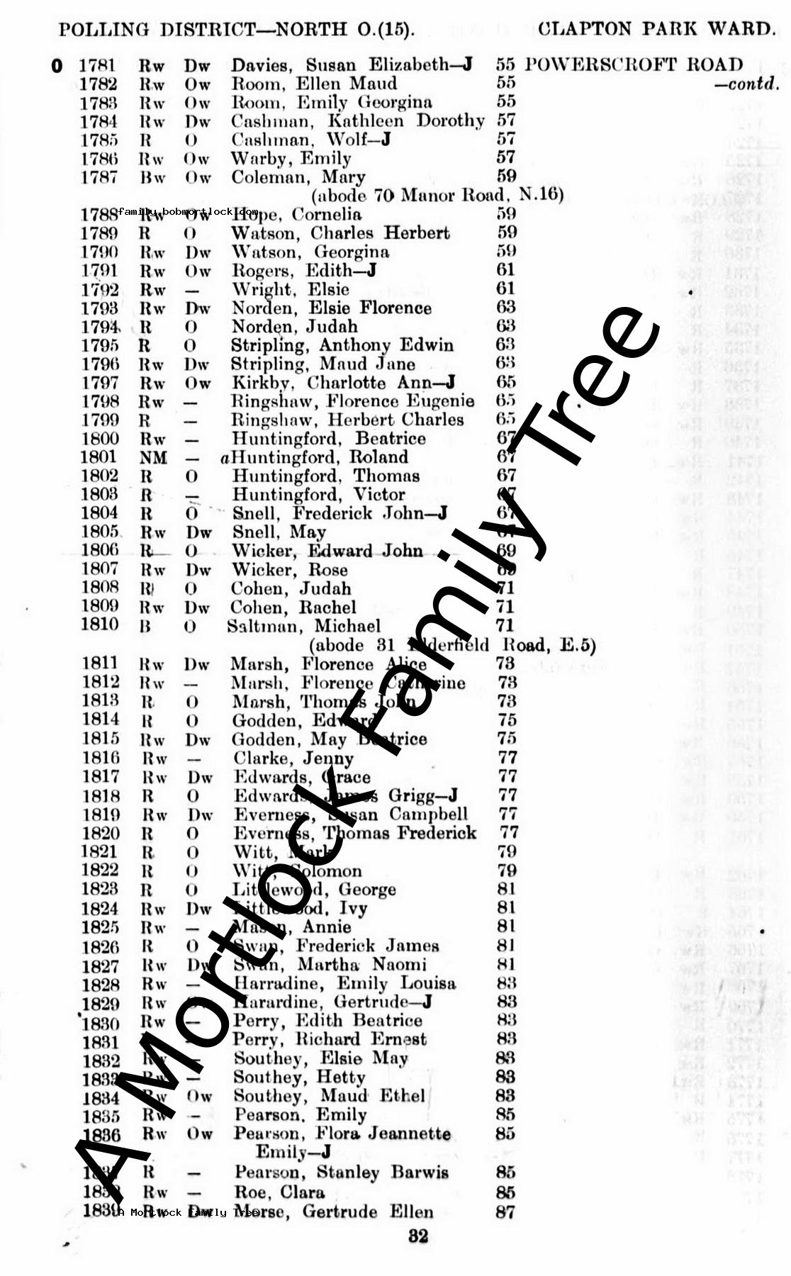 | Residence | 1932 (Age 24) Hackney, E London, England Address: 63 Powerscroft Road |